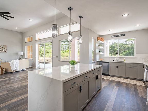 Adjacent to the living area is a dreamy kitchen that features a large island with Quartz