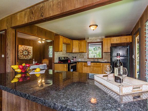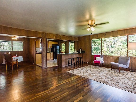 Looking for something move-in ready, affordable, and beyond the typical new construction on the market today? This beautifully refurbished Hicks home boasts all the features common to traditional Hawaiian homes including tongue and groove redwood walls, hardwood floors, and bright, airy living spaces without any work needed! Upstairs is home to a large open living area with kitchen and dining nook. The kitchen has been completely redone with travertine flooring, new cabinetry, and new appliances. It's ready for meals to be cheffed up and served at the spacious breakfast bar with open shelving or in the adjacent dining area. Two bedrooms, both sporting those trademark hardwood floors, and a full bath with new sink and vanity can be found on the upper level as well. The lower level, with separate entry, has been freshly pained and tiled throughout with those gorgeous travertine tiles. It is home to a large family room, two extra large bedrooms, one smaller bedroom, and a huge laundry area. This laundry area has the makings of the ultimate craft area, an office space, or a kitchenette could easily be added to create two entirely independent living spaces. There are so many possibilities on this level! Other recent upgrades include new exterior paint, new ceilings on upper level, new roof over the attached two car carport, and a newly reclaimed yard space. Affordable and move-in ready HPP homes are tough to find in today's market. Make sure this one is on your must see list!