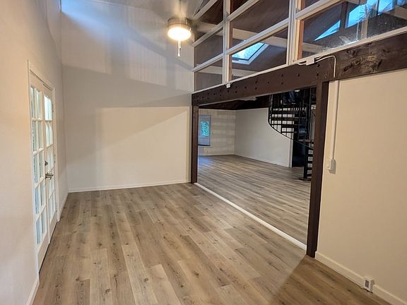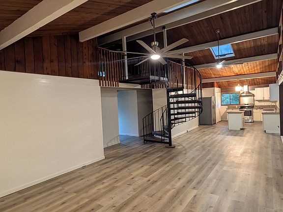 This is an excellent property for a large family. The unit upstairs is a 3 bedroom, 2 bathroom, with a loft that is approximately 1850 sqft. It has vaulted ceilings and a spiral staircase that leads to a large loft space. There is a gorgeous kitchen with custom cabinets and quartz counter tops. The laundry room is located in the sunroom adjacent to the kitchen. The living room is open and has abundant natural light and a wonderful cross breeze. There are many mature fruiting trees and flowering plants throughout the fully-fenced 1-acre property. It's across the street from the Fire Department and has county water. Fruit Trees Include: 6 Avocados, 2 Breadfruit, Lychee, Sapodilla, Many Coconuts, Mango, Macnut, Sour Sop, Several Citrus, Loquat, Java Apple, Lilikoi, and Guava. There are many beautiful flowering trees and bushes as well. 6 mo. or 1 year lease Rent 2500 plus utilities