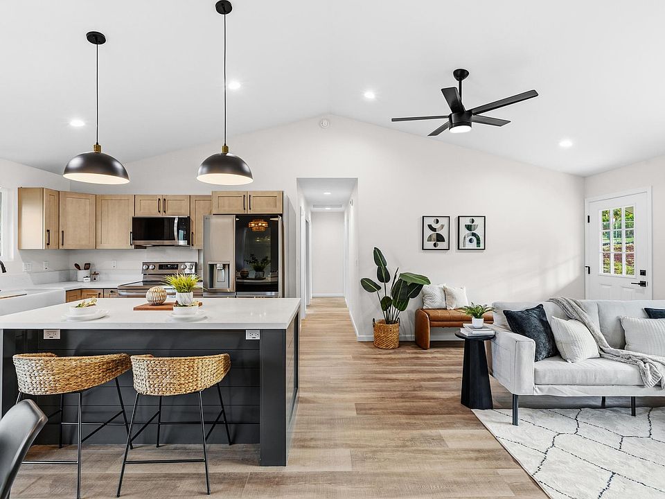 Modern fixturesStylish flooringSleek cabinetryContemporary kitchenClean minimalist designQuality craftsmanshipExpansive one-acre lot