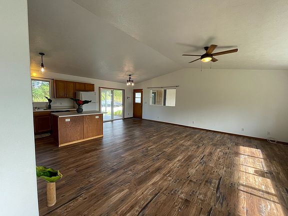 You will appreciate the high vaulted ceilings and open and sunny living room, dining area, and kitchen.