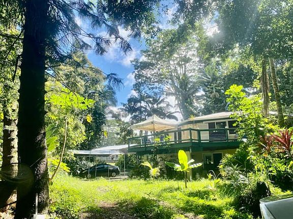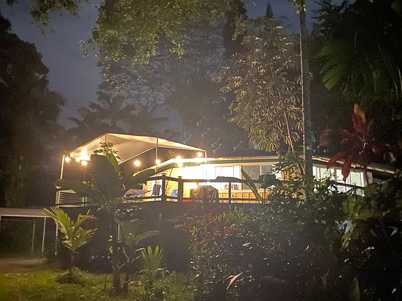 1200 sq feet w 600 sq foot deck in a jungle environment Private entrance to second floor washer & dryer in unit, bar b Q. Ceiling fans in all bedrooms and living areas. . Located in Hawaiian Paradise Park, conveniently and centrally located to quickly access the sights and attractions of the Big Island's east coast, close to markets, retuarants and Gas station. All utilities are $200 extra, (electricity, cable, internet, garbage pick up, water and gas) 6 month lease prefer 1 year