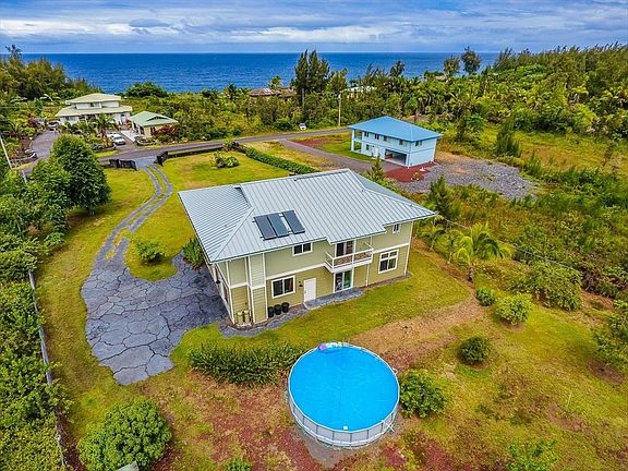 This Hawaiian Paradise Park property is ideally located for majestic sunrises, whale watching and panoramic views of the Pacific Ocean. Custom details and upscale amenities have been designed for your comfort and enjoyment. The main living area upstairs maximizes the ocean views with sliders opening up to the covered lanai. Imagine spending your evenings star gazing or a morning relaxing with a cup of coffee while the sun rises overlooking the ocean. Back inside, the chef's kitchen is anchored by the 10 ft custom island with seating, an outdoor grilling deck, walk in pantry and dumbwaiter. Another plus is the Miele six burner convection range and ultra quiet Miele dishwasher. The master suite has stunning views of the ocean while sitting on the lanai. Better yet, take in the views from the outdoor master shower or soak in the relaxing tub. Everything has its place with custom cabinetry in the bath and impressive storage in the walk in closet. The upstairs is complete with a half bath, home office and laundry room. The downstairs features an apartment with separate entrance with living, kitchenette, full bath and bedroom. Great place for visiting friends and family to stay or use as a hosted vacation rental. In addition to the apartment, the downstairs has two additional bedrooms and a full bath with walk in shower. Each of the bedrooms has a sliders out to a lanai.Other quality features include:* Custom lava rock drive* Split Zone Air Conditioning* Well Water with filters, UV and Septic System* Solid Bamboo Flooring* 9 ft vaulted ceilings downstairs & 10 foot ceilings upstairs* Central Vacuum* Exterior Hardiplank Siding* Milguard Double Pane "Low E" Glass Windows* Oversized 2 Car Garage - space for workshop and storage* Fully fenced and gated on 1 acre of land* Photovoltaic ready* An orchard with over 20 producing trees including avocado, mango, jaboticaba, banana and citrus