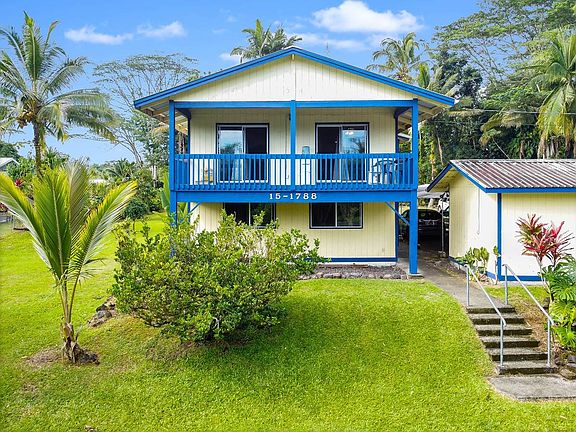 Welcome Home!! This Large home is located in the highly sought-after neighborhood of Hawaiian Paradise Park! Your new home features 4 bedrooms and 3 full bathrooms that has been recently renovated and ready for new owners.  Upstairs you'll find a spacious living room with sliding doors to the covered lanai overlooking the park-like front yard. This large space has new carpet underfoot and is adjacent to the renovated and enlarged kitchen with tons of storage and a center island offering bar seating!  With a main floor primary bedroom is spacious and double doors to an ensuite bath with newer plumbing, a renovated walk-in shower and ensuite laundry, this home is ideal!