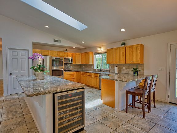 Cathedral ceilings and Skylight brightens up the spacious beautiful gourmet kitchen. Tons of granite countertop space, dishwasher and huge island with wine cooler.