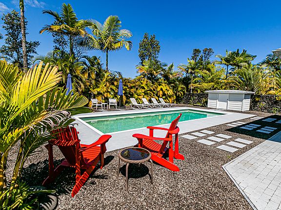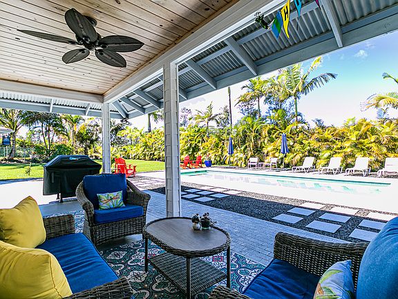 The house, yard and pool area are completely fenced and sit on a stunning one acre lot. Pineapple, coconut, Tahitian lime, blood orange, Meyer lemon and avocado compliment the mature and well-maintained landscaping of palms and local flora.