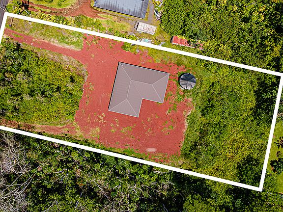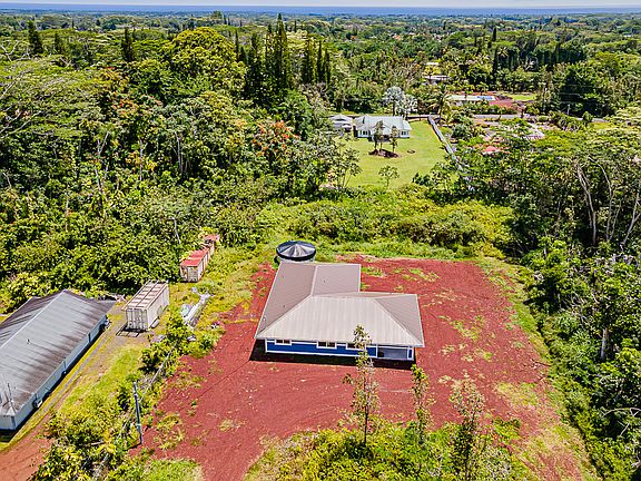 Take a look at this beautiful, brand new build located near the top of HPP for easy in and out access. It's also tucked away on the lot behind foliage which provides privacy.  There's a nice curved rock wall fronting the property with 2 openings to the convenient circular driveway.  The coffered ceiling in the living area with recessed lighting is a classy touch.  Custom faux-wood blinds add additional privacy.  Life-proof vinyl flooring, high end kitchen appliances, marble countertops, solid wood cabinets and porcelain bathroom tiles complete the many features that make this new construction a stand-out.  Extra large catchment tank is 10,700 gallons.  There is a nice cross breeze on this property and the roof is insulated with radiant barrier foil insulation which keeps the house cool.  The highly desirable floor plan has the master on one side of the house with the other 2 bedrooms/office on the other. Don't miss out on this beautiful new construction home.