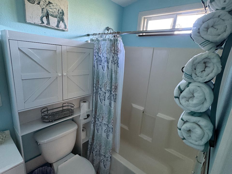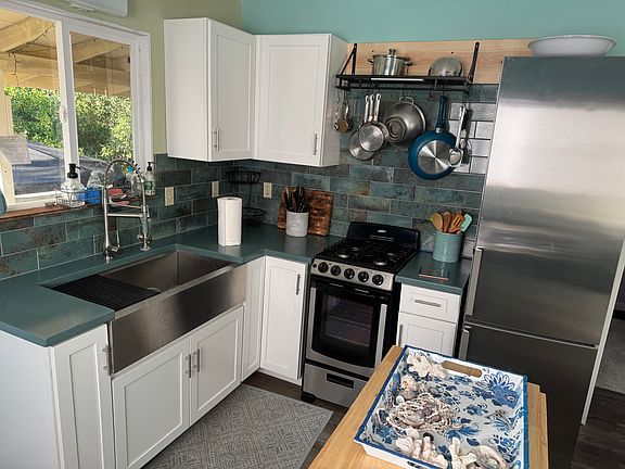This charming property is situated on a serene one-acre lot in a quiet neighborhood, offering plenty of space to relax and unwind. The bedroom features a comfortable queen-sized bed and a wardrobe for your clothing. The full bathroom includes a shower/tub combination, vanity, and toilet. The living area and kitchen are designed in an open concept layout, complete with an island for added functionality. Step outside to enjoy the expansive deck, perfect for outdoor living, along with an additional outdoor shower for a refreshing experience.