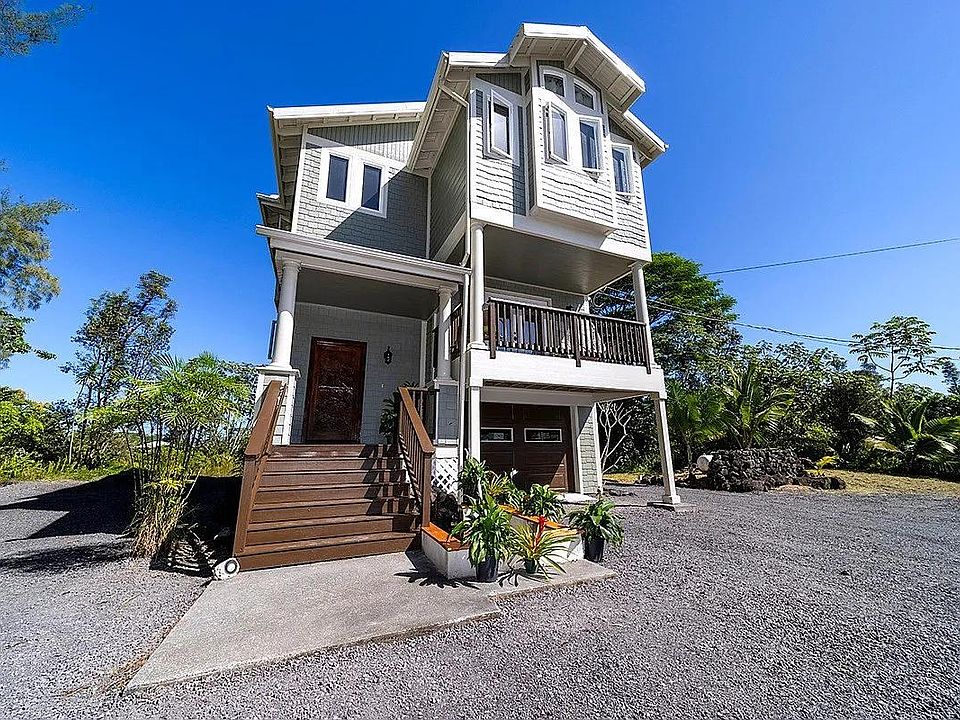 Welcome to your new home on the Big Island of Hawai'i! Nestled on an expansive acre of land in the centrally located neighborhood of Hawaiian Paradise Park, this unique three-story, fully furnished home offers the best comfort, beauty, and natural living that the island has to offer. Property Overview 4 Bedroom | 3.5 Bathrooms Designed with meticulous attention to detail, this home boasts high-quality building materials such as Brazilian teak floors, solid wooden doors, custom mahogany trim, and maple and cherry cabinetry throughout. The home harmonizes with the natural rainforest environment, featuring three separate covered lanais to enjoy the outdoors from sunrise to dusk. Its unique location and architecture provide eco-friendly functionality, adapting to the optimal Hawaiian temperatures to eliminate the need for AC or heating. Water is sourced from a well-maintained rainwater harvesting system equipped with a dynamic Platinum Quantum Disinfection system that produces clean water at every faucet. Land The front yard is bordered by a rock wall and shrubbery from the main street. A steel double-gate, operated with a remote, secures the entrance. The property is adorned with a variety of fruiting trees, including coconut, avocado, lilikoi, banana, starfruit, lemon, black sapote, papaya, noni, and pink guava. Ornamental and aromatic trees such as o hi a lehua, pak lan, koa, plumeria, and night-blooming jasmine create a rich, multi-sensory landscape. A vegetable garden surrounding the house provides a consistent supply of Hawaiian peppers, tomatoes, mint, basil, and other useful herbs. Third Floor The top-level features 14-ft open beam vaulted ceilings, a spacious kitchen with soapstone countertops and a new refrigerator, an island furnished with high seats, and a square stone dining table for eight below a chandelier. This floor also contains a half-bath and a living room furnished with a 75-inch TV, subwoofer, and in-wall surround sound speakers that greatly enhance the potential of the home. Numerous windows allow light from all directions, and double French doors in the living room lead to a massive 300 sq. ft. northeast-facing lanai with outdoor furniture and a propane grill. The unique three-floor design offers an elevated vantage point and a special sense of security and privacy. Second Floor The second level contains a second master suite with a private bathroom and jacuzzi tub. In this room, double doors open to a private southwest-facing lanai overlooking the koi pond near the front door. This floor also has another standalone full bathroom with a custom vanity, and the 3rd and 4th bedrooms of the house, which are both connected to a wide lanai that provides access to the ground floor and is furnished with furnished with gym equipment and a hammock. The 4th bedroom features a stunning wraparound mural painted by local artist Trisha of Pele's Kitchen. First Floor The ground level includes a laundry room with newly upgraded washer and dryer appliances, a single-car garage, and a storage area. The front entrance features a beautiful hand-carved volcanic door, a koi pond, and a Ring wireless doorbell and camera. Neighborhood Situated in the "sun-belt" of Hawaiian Paradise Park, this home enjoys shorter bouts of rainfall than other sections of the neighborhood. Stunning sites like Maku u Point, Paradise Point, and the trail to H Ena Beach are within walking distance. The neighbors are amicable and responsible. With easy access to the towns of Pahoa, Keaau, and Hilo, HPP is a central location within Windward Hawaii. About Us This home was our family residence until 2022 when we moved to O ahu for work. It is very beloved to us, so we are highly responsive on matters of maintenance. Available for one or multiple year leases. $3,500 rent. Renters responsible for electricity and gas.