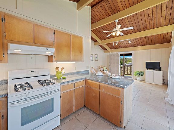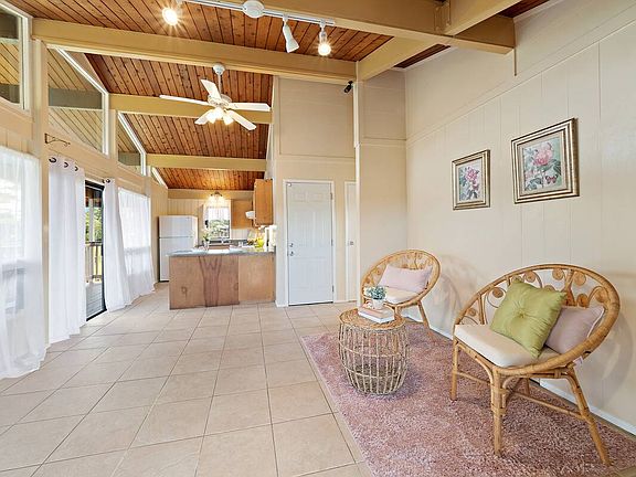 This adorable home in the popular Hawaiian Paradise Park subdivision is the perfect blend of charm and convenience!  As you step inside, you'll be greeted by high ceilings and an abundance of windows, allowing lots of natural light. The open floor plan seamlessly connects the living and kitchen areas, and the back lanai is perfect for enjoying your morning coffee and the afternoon breezes. Elevated living area provides two carport spaces, a full newly updated bathroom with tiled shower, laundry room and storage on the ground level. The house is set back from the road, offering privacy. Conveniently located on a paved road close to the highway, this cozy home provides a quick commute to town and easy access to amenities.