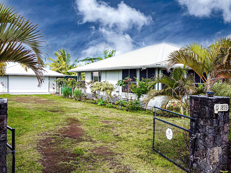 Welcome to 15-1893 7th Avenue in Keaau, HI! This delightful property offers a spacious 3-bedroom, 2-bathroom layout with 1355 square feet of living space, situated on a generous lot spanning 1acre. The primary bedroom includes a huge walk-in closet and bamboo flooring, creating a cozy retreat.  The screened front lanai is the ideal spot to relax and enjoy the tropical surroundings, while the large back lanai provides a wonderful space for outdoor gatherings. Outside, you'll find a beautiful garden with approximately 40 mature fruit trees, creating a serene and picturesque setting. Additionally, the property boasts a Japanese-style bath, surrounded by Bamboos, adding a unique touch to the home.