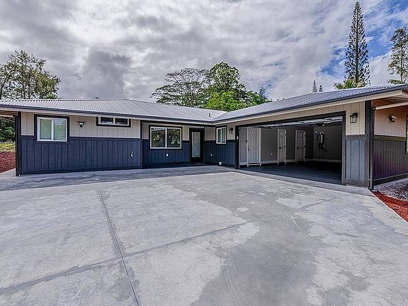 BRAND NEW HOME LOCATED IN HAWAIIAN PARADISE PARK ON PAVED ROAD BETWEEN PARADISE DR. & MAKUU DR. br * 3 Bed /2 Bath Home 2,360 sft total under roof br * 1 Acre br * Expansive concrete driveway br * Open floor concept with desirable split floor plan br * Bold & Black accent wall and entry door br * Bold & Dark Cabinets with soft closing doors and drawers throughout br * Kitchen island sits 4 br * Vaulted ceilings in the living area, can lighting and 2 ceiling fans br * Blinds installed throughout the entire home br * Primary Bedroom has a tray ceiling w/can lighting, ceiling fan, walk-in closet w/ built-in shelves, large bath w/double sinks, LED lights with defroster, matte black fixtures, and a large custom tiled double shower br * Main/Hallway Bath LED mirror w/ light and defroster, custom tiled shower & tub br * Bedroom 1 & 2 have mirrored closet doors, custom blinds, can lighting & ceiling fans br * Interior laundry room w/ basin and folding area br * Large spacious 2-car covered garage with 2 garage remotes and storage rooms br * Garage, front entry and back covered lanai painted with Epoxy br * UV water filtration system br * Heat on demand br * Property landscaped with re cinder br * Located on a paved road near the top of the Subdivision br * Quality Built you won't be disappointed.