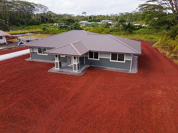 Welcome to the Hawaiian Paradise Park Subdivision located in Keaau. Here you can own a brand-new custom designed home on a 1-acre parcel. This lovely build is not your standard house package, the builder created their layout to maximize space and deliver a unique product from other homes in the area. As you walk into the front door you find yourself in the large living room which connects to a beautiful modern style kitchen. A unique blend of the tile back splash paired with titanium granite for a nice luxury feel. Centered is a bar top that can sit to entertain 8 guests and ample amount of counter space for a variety of uses. The master bedroom encompasses a large walk-in closet with built in shelving and a large walk-in shower. Your two other bedrooms are a standard 11x12 square and the main bathroom was designed with a beautiful tile and texture finish. The kitchen holds a walk-in pantry and leads to the laundry area where you will find your washroom with a stainless-steel sink. In the back of the home holds a covered outdoor lanai area where you can enjoy the large back yard space that has the ability for gardening and sustainability projects. Lastly this home has a 120' concrete driveway that leads you to a large two car enclosed garage with built in shelving, large storage closet and a half bathroom. Here you will also find the double UV water filtration system. This new build is defiantly a must see! While information here is deemed reliable, buyer and buyer's agent responsible for proper due diligence.