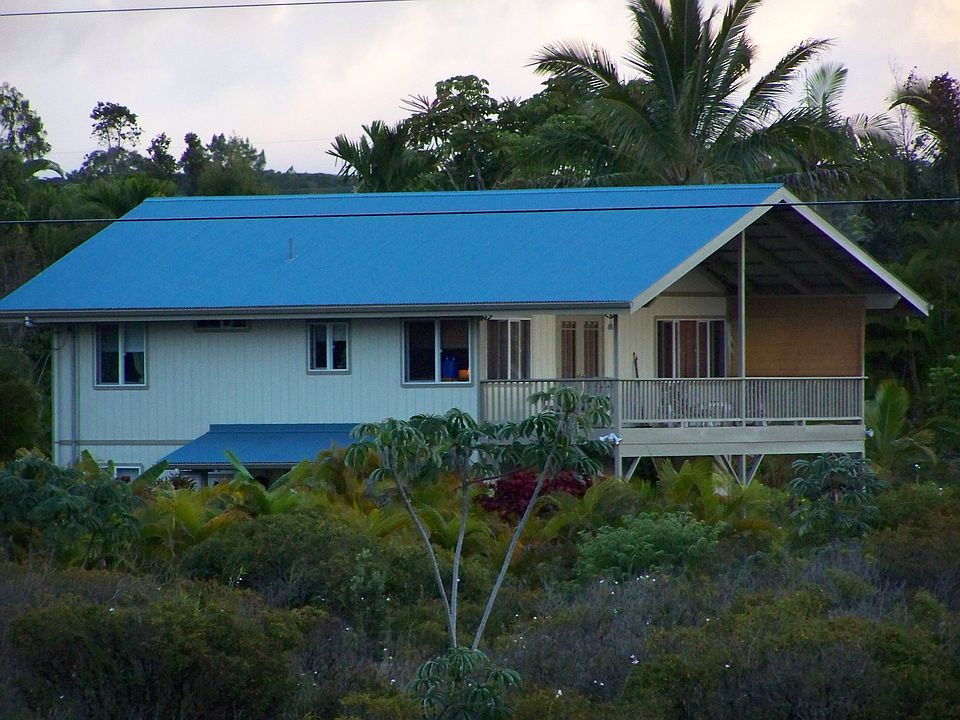 This quality two story home is located in Hawaiian Paradise Park on 4th Ave between Paradise & Makuu. It's set back from the road for plenty of privacy. Enter the house on the first level from the covered carport and have immediate access to a large bedroom/living room with an additional side entrance, making it perfect for guests to come and go as they please while visiting. There is also a bathroom and large laundry room on the first level. An internal staircase brings you upstairs where you will find two bedrooms, a bathroom, and an open living room/kitchen with a large covered lanai. Situated on an acre of land, nice mixture of landscaping, open area, tropical foliage, fruit trees, and a natural lava hill with native ohia. The home is clean and comfortable - it shows great!The information herein may contain inaccuracies and is provided without warranty or guaranty of any kind. Agents and Buyers must independently verify any info they deem material or important to their purchase or any offered price thereunder. Square footage should be confirmed by an appraisal report. Property boundaries should be confirmed by a surveyor.