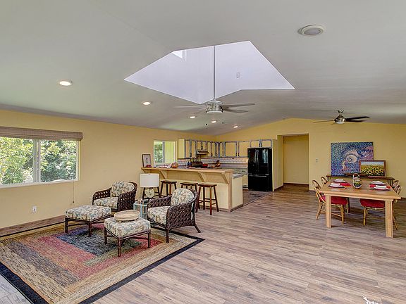 2 Homes on 1 acre privately nestled within the property beyond a gated entry with a wide variety of plants such as, starfruit, blood orange, rambutan, pineapple, lime jackfruit, kukui nut, avocado, cacao. bamboo just to name a few. Located on a quiet dead-end street, with a fire pit and swing under the mango tree.
