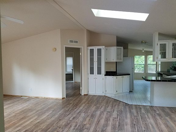 For rent: a spacious home 1850 sq ft with an open kitchen and living room area, high vaulted ceilings with skylights. It includes 4 bedrooms plus a separate office, 5 piece master bath and full 2nd bathroom, wood floors, and is located at the very end of the street on a peaceful 1.5-acre wooded lot with lots of huckleberries. Recent upgrades: new energy efficient heat pump with central AC. Very private with plenty of parking space. Sewer/septic utility included in rent.