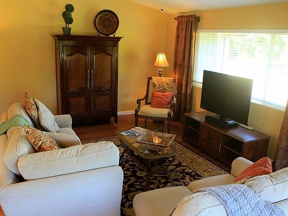 This well cared for 3 bedroom, 2 bath home and an acre come fully fenced and gated. Upon entering the home it is evident that this is a warm and inviting living space. Features include a newly renovated pantry, gas stove, upgraded counter tops, and luxury vinyl flooring. An additional storage space, currently used as a yoga studio, sits off the kitchen and has its own entrance. For your comfort there is a Daikin air conditioner in the living room. The open concept living space, kitchen, living and dining area are perfect for entertaining your guests and very relaxing. Kitchen has been updated with a new refrigerator and stove with a beautiful new back splash. The hall bathroom was remodeled to include a walk in shower. The luxury master suite could be the ultimate retreat after a busy day. The walk-in closet allows for an expansive wardrobe and has a new custom built organizer. The master bath includes a vanity sink, separate from the full bath tub area. The home has been newly painted inside.The one acre has an additional fenced paddock in the back of the residence for livestock, farming or whatever your heart desires! Meticulously landscaped, plantings include mature fruit bearing ulu, avocado, orange, papaya, banana, and calamondin trees, plus lots of pineapples.The bonus features are endless with this property. Available to show! This beautiful home could be yours!