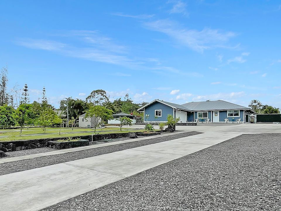 This contractor built 3 bedroom, 2 bathroom home is located in the coastal community of Hawaiian Paradise Park just a short distance to the ocean. The split floor plan home has 1583 sqft of living space , over 500 sqft of covered lanai, 464 sqft of attached garage PLUS a second improved 572 sqft studio/garage with bathroom set away from the home. Great for guests, office or as a rental.