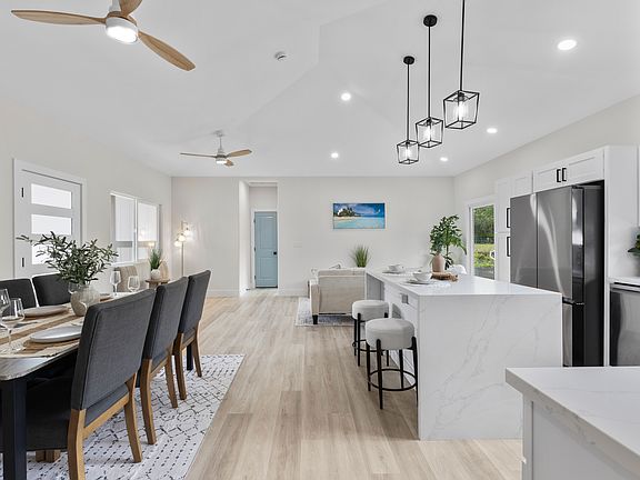Welcome to this beautiful newly built 3-bedroom, 2-bath home in the highly desirable Hawaiian Paradise Park subdivision. Nestled on a full 1-acre lot. Whether you're looking for your forever home, a vacation retreat, or a smart investment, this brand new property offers comfort, quality, and island living at its finest.<br><br> Interior Features:<br>-Large kitchen island – ideal for meal prep, gathering, or casual dining<br>-White quartz countertops, white shaker hardwood cabinetry, and stainless steel appliances<br>-Luxury vinyl plank flooring throughout<br>-Floor-to-ceiling tiled bathrooms<br>-Primary suite features a glass-enclosed walk-in shower and an extra-large walk-in closet<br>-Split floor plan offers added privacy between the primary suite and guest bedrooms<br>-Spacious open-concept layout with seamless flow between kitchen, dining, and living areas<br>-Convenient indoor laundry room with washer & dryer included<br><br> Exterior Highlights:<br>-Covered back lanai <br>-Concrete driveway<br>-Enclosed garage for secure parking and additional storage<br>-Half cleared and landscaped property on a 1-acre parcel<br><br>Peace of Mind Included:<br>-Enjoy worry-free living with a 1-year contractor warranty included.