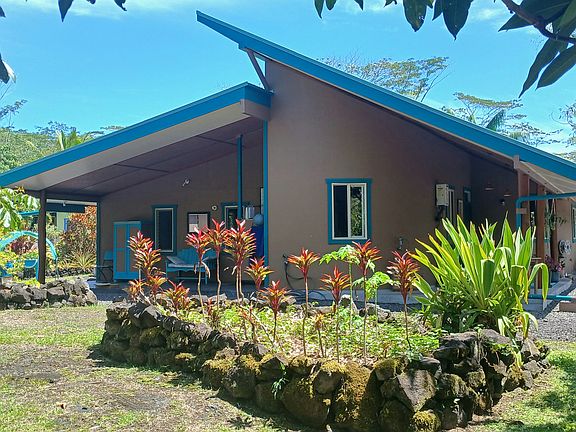 Price Reduced – Island Oasis Retreat<br>Experience island living in this unique, artistically designed home located in Hawaiian Paradise Park’s sunny “sun belt.” Just a mile from the ocean and safely out of the tsunami zone (lava zone 3, fully insurable), this private retreat sits at the back of a landscaped, fully fenced 1-acre lot on a quiet dead-end road.<br>The custom “clerestory” home features bamboo mat ceilings, Ohia posts, rounded front walls, and three lanais for relaxed indoor-outdoor living. The 1-bed, 1-bath layout includes a grand bedroom with soaring 15' ceilings, a clawfoot tub, outdoor shower, and an open kitchen/living space that flows onto a large lanai—perfect for dining and entertaining.<br>Property highlights include:<br>1,847 sq. ft. slab foundation with wide eaves<br>Carport + separate standalone carport<br>6,500-gallon water tank, freshly painted standing seam roof, new gutters<br>Updated solar with inverter & lithium batteries (HELCO power available at the gate)<br>Additional structures:<br>Ohana (320 sq. ft., permitted): kitchenette, toilet, outdoor shower, solar + water.<br>Shop (16’x20’, permitted): covered workspace, generator house, backup tank, screened room. A 12'x16' free standing screen room with laundry area. <br>The fully fenced lot offers privacy and abundance with raised garden beds, a chicken coop, and a wide variety of tropical fruits—avocado, coconut, mango, lychee, citrus, cacao, cinnamon, cashew, breadfruit and more.