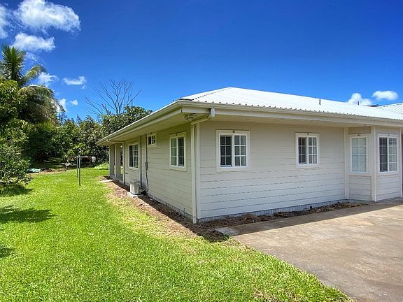 Located towards the back of a quiet dead-end street in popular Hawaiian Paradise Park, this spacious 4 bedroom, 3 bath custom built home with attached lanai & a detached storage on one acre of land has much to offer you!  Its rock wall topped with vinyl fencing, & dual gated entry add both curb appeal & extra security and make this property stand out from the street at first sight.  The main entry gate leads to an ixora lined & paved driveway.  The fairly-level and landscaped one acre parcel features a mature grassy lawn and accent palms along with strategically planted trees for privacy.  There are numerous fruit trees at the back of the property that include varieties of citrus, mangosteen, soursop, lychee, longan, ulu (breadfruit), jackfruit, and avocado. You will also benefit from lower energy bills w/ the owned 21-panel KumuKit PV system.  The home is also equipped w/ a UV water filtration system and AC units in two bedrooms.