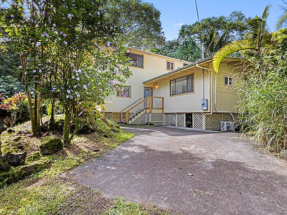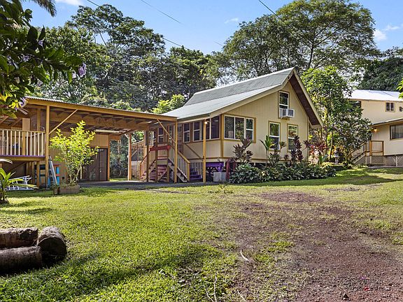 Seize the incredible opportunity to own a unique property in Hawaiian Paradise Park with two permitted structures on one lot! Imagine designing the layout to suit your family's needs. The main house is a unique two-story home featuring two bedrooms and two bathrooms, each with private entries for added convenience. Adjacent to it, the detached bedroom stands out as a charming one-bedroom, one-bathroom retreat, showcasing stunning open beam ceilings, a cozy loft, and beautiful hardwood floors.