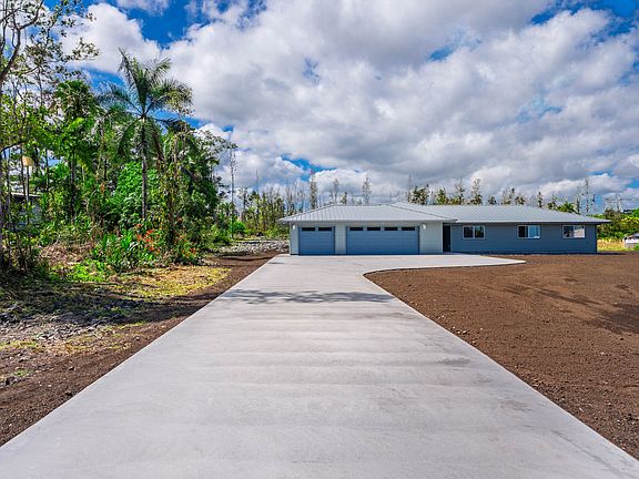 Own a Limited Edition ELJ Signature Home in Big Island's Sought out Hawaiian Paradise Park. ELJ Homes are known not only for their artistic craftsmanship, thoughtful touches, Museum-like interiors & Robust Structural Integrity but also its Exclusive, Deeply Discounted White Glove Post-Purchase Home Customization (PPHC), based on Buyer's Modification Requests. This Signature Home's focus is Kitchen & Bathroom Luxury, with an emphasis on seamless indoor-outdoor living and large garage-storage space. With 2 flat land areas each of which has partial ocean views and over 3200+ Sq Feet under roof, this 4 Bedroom, 2 Bath, 1925+ Indoor Sq Ft Home features a massive 480+ Sq Ft Lanai, a 700+ Sq Ft expansive 3-Car Garage & a 12 inch steel & rebar reinforced concrete foundation that's stronger than traditional concrete slabs for unsurpassed structural integrity & durability. Inside this masterpiece you'll be surrounded by luxury, spaciousness & elegance: expertly installed premium Lifeproof flooring, Stone Tile & baseboards, matching Kitchen-Bathroom-Laundry Quartz Countertops & Cabinetry, a Walk-in Pantry, an Elegant Laundry, Premium Luxury Appliances, matching Floor-to-Wall Stone Porcelain Tiled Bathroom with Dual-Person Shower Zones, matching Touch-screen, Anti-fog Vanity Mirrors, Double Door Primary Bedroom entry, Canned Lighting & Premium Moen Finishes exude Superiority & Class. With 3 distinct entry/exit & entertainment zones, the 480+ Sq Ft Outdoor Patio invites you to effortlessly live the Hawaii lifestyle & entertain in style, doubling the kitchen, dinning & living room space. The Fully Paved Driveway Setbacks the home 130 Ft from the Road, giving you better privacy than most other homes, while the Indoor-Outdoor Window Casings & fully insulated attics and walls give the Home better insulation, cooler temperatures in the summer & a finished home feel. The black cinder laid throughout makes it soil-ready for lawn & garden development.