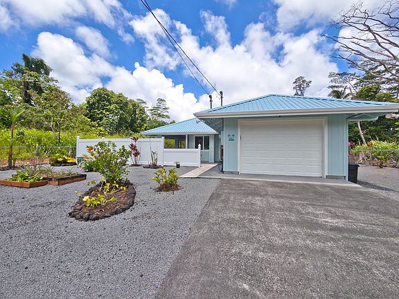 This home in sunny Hawaiian Parks has been meticulously cared for and updated with solar and split AC units. A fully fenced and gated property, upon arrival you have a one car garage, plus plenty of additional space for parking, a low maintenance front yard with privacy walls invites you in to the home. <br>Upon entry, open concept living hosts room for gatherings, from the dining area and kitchen, to the screened in lanai, perfect for cooling off after a long day. A split AC unit in the dining area ensures a cool retreat. <br>The primary bedroom features a split AC unit, walk in closet and an ensuite bath. A private screened in lanai off the primary make a great escape to enjoy views of the back yard. <br>Two additional guest bedrooms share the hall bath, and a stack washer/dryer in house makes doing laundry a breeze. <br>The yard has a variety of fruit trees and the raised beds are home to dozens of yellow pineapple, while in the front yard the white pineapple flourish. Additionally avocado, jaboticaba, and citrus are also well established. Previously there was an above ground pool that has since been removed allowing a level area to add as desired: greenhouse, gazebo, or more garden!<br>This home is minutes away from Kahakai Beach Park where you can picnic and watch whales in season and turtles when the waves are calm. Puna Kai Shopping Center and Pahoa town have diversity in dining choices and entertainment just minutes away as well.