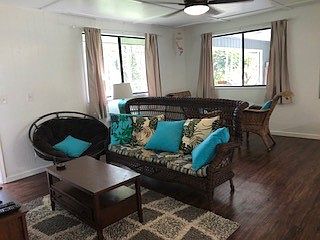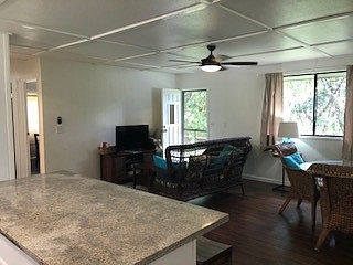 Charming furnished cottage available in Hawaiian Shores, which enjoys piped water, mail to the curb and easy access to Internet. Laundry room off the carport with a second toilet. Utilities are Tenant responsibility. No pets. A Hilo Bay Realty application must be on file to schedule a showing; visit hbr dot managebuilding to complete an online application.