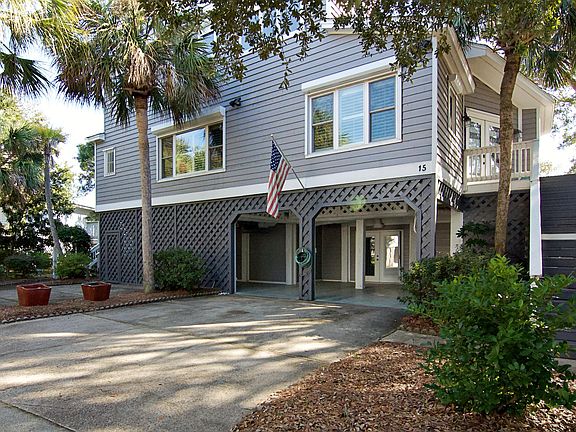 STEPS FROM THE BEACH! Stunning property just steps from Isle Of Palm's amazing beach and right outside of the Wild Dunes gates! Five bedrooms, three bathrooms, and tons of living space! This home is conveniently located at the end of Palm Blvd offering a quiet, tranquil oasis for any beach lover. Lush landscaping and mature trees surrounding this corner lot gives additional privacy while the sounds from the ocean remind you of how close you are to the beach. Upon entering you will notice the abundance of natural light, stunning wood flooring, and the soaring vaulted ceilings making this already large living area feel even more spacious. The grand living area opens into a dining area and huge, open kitchen with additional seating. In addition to stainless appliances and ample counter-space this kitchen also boasts plenty of cabinet and storage as well as views into the two attached sunrooms and the upstairs loft area. The first of two sunrooms off of the kitchen and dining area has tall windows, vaulted ceilings, and an incredible amount of natural light making it the ideal spot to relax after a long day in the sand. Right off of the first sunroom is the second is currently being used as an additional dining area with access to the huge front porch. The main level also boasts a large master suite with en-suite bath and two huge walk-in closets. Master bath includes dual sinks, a soaking tub, and shower enclosure. A secondary bedroom on the main level with private full bath makes this a great spot for guests! Upstairs you will find three additional bedrooms, two with a shared Jack-N-Jill full bathroom. The final room is perfect as a game room! This home boasts several outdoor areas for eating, lounging, and sunbathing on the wrap-around front porch. The entire downstairs area surrounding the two carports provides additional storage. A "basement" type area is also under the house making a great spot for a game room or even more storage; the area is air conditioned and sellers use it to store the golf cart, beach equipment, and bikes. An outdoor private shower found on the ground level for a quick rinse after the beach! This house is ideal for families or groups that need ample living space! This home is considered part of Wild Dunes however is not subject to any sort of assessments or transfer fees when sold. A non-resident membership is available at a discounted rate which gives you access to all of the Wild Dunes amenities including an 18 hole golf course, tennis courts, several swimming pools, and more! A new hotel is being built at the intersection of Palm Blvd. and 57th Avenue that will include a rooftop bar/restaurant, spa, and swimming pool, and will all be available to Wild Dunes Club Members.