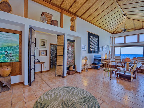 This custom-built ocean front Hawaiian Paradise Park home blends island style with modern comfort: Exotic hardwoods throughout, craftsmanship attention made to details, and an unobstructed view of the ocean and coastline from nearly every room. Enjoy both indoor and outdoor sitting areas with complete privacy. Feel the warm tropical breeze, breathe in fresh ocean air,, watch the waves, the whales, and marvel at the dramatic sunrise and moonrise.
