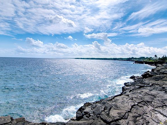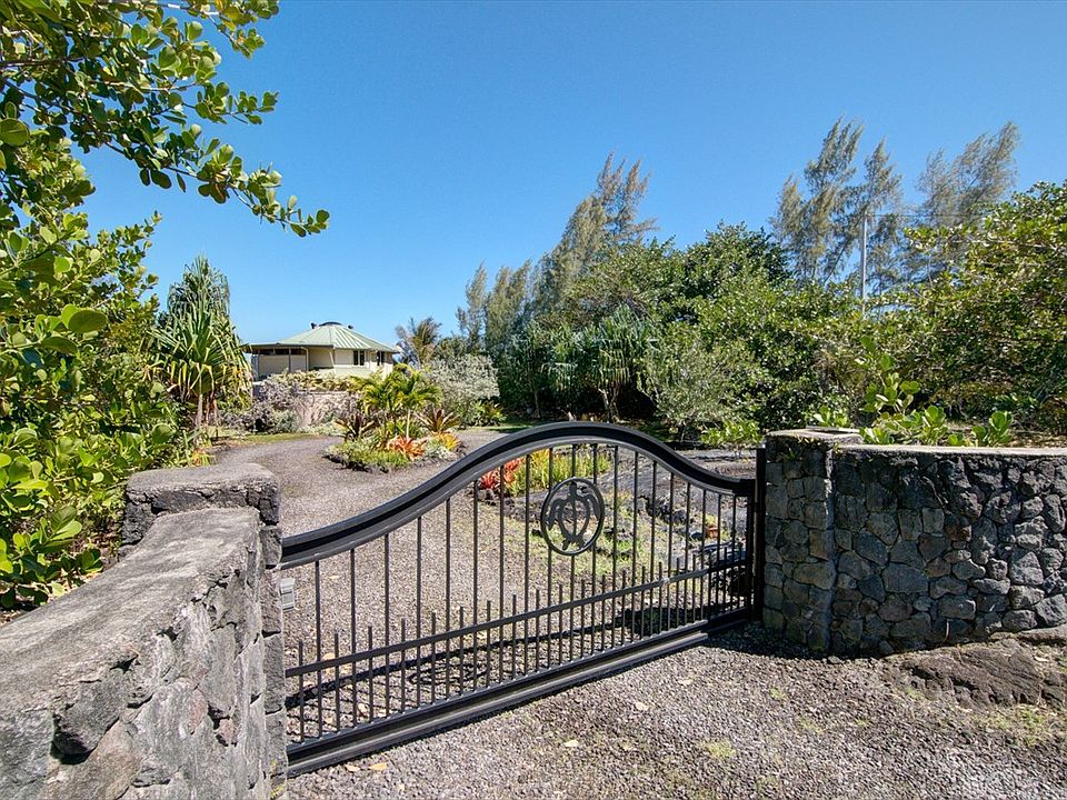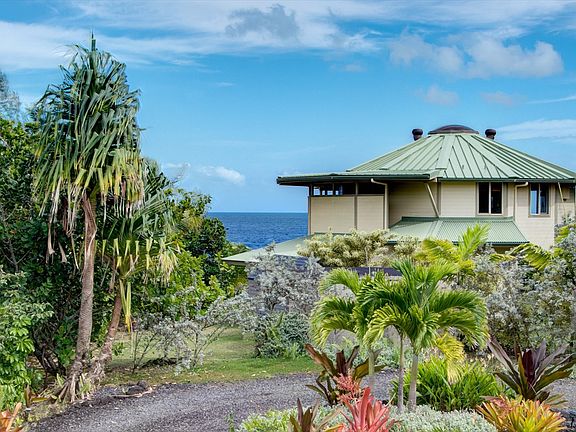 Kahikole is an oceanfront home on a half acre of land in Hawaiian Paradise Park. Set just back from the cliffs it is in full view of the glorious sunrise and dramatic sapphire blue ocean year round! The landscaping, front gate and rock walls offer this home a nice degree of privacy. Currently being offered as a vacation rental and sold fully furnished, a new owner can start reaping financial benefits right away!The two story house has nice separation between the living areas and bedroom suites. Downstairs are two master suites, each with an en-suite bathroom. Both bedroom windows look out onto the ocean. Wake up and marvel at the views right from bed! The south suite bathroom has a full bathtub and shower and the north suite bathroom has a slate-tiled walk-in shower and two vanity sinks. The downstairs walls are finished with a lovely Venetian plaster decorative finish with soft ocean colors. There is also a laundry closet with washer and dryer close to the bedrooms for convenience.Upstairs you will find an even more impressive view of the ocean from the covered lanai and from inside. Here is a living room, dining area and open kitchen. Also upstairs is the third bedroom (or home office) and another bathroom. The floors are elegant wood with a decorative honu (sea turtle) in the center under the vaulted skylight. The gourmet kitchen is finished with granite tiled counters, stainless appliances, dishwasher and a Viking gas range. The property is fully landscaped with plants that do well in the salt-water air. Beautiful bougainvillea, plumbago and hibiscus flowering plants add color! The home is extremely well maintained. A new aluminum roof installed in 2015 is an extra protection from the sun and salt-water. One of the best priced and fully equipped oceanfront homes on the market in Hawaii....your new home, a vacation home or vacation rental business, all options are possible!
