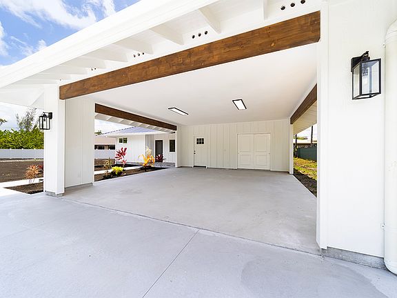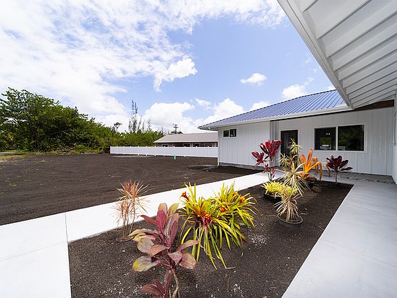 Brand new JET BUILDERS home near the ocean in Kaloli Point! Home is uniquely laid out and work of a master craftsman, insulated, special high-quality finishes, vaulted ceilings, unique craftsman-style windows & door wraps, quartz countertops, beautiful light fixtures, candlestick chandelier . . . ***Open floor plan w/living room, kitchen, dining - great for fellowship & socializing *** Kitchen - undermounted cabinet lights, self-closing drawers, gorgeous custom tile backsplash, ample storage, versatile quartz bar island w/pendant lights *** Master Bedroom - located on one side of home w/huge walk-in closet. Bath - free-standing soaking tub & custom ceramic tile shower w/barn door, double basins *** Second bath - whirlpool tub w/ceramic tile surround *** 2 bedrooms - on other side of house for privacy *** exterior - carport w/stained custom wood beams, concrete walkway w/planter area, attractive entry w/front landing Added extras . . . Solar water heater, Well Water, full length 6 ft. white vinyl fence along back side of property for privacy. Welcome home to cozy comfort in your elegant new home!