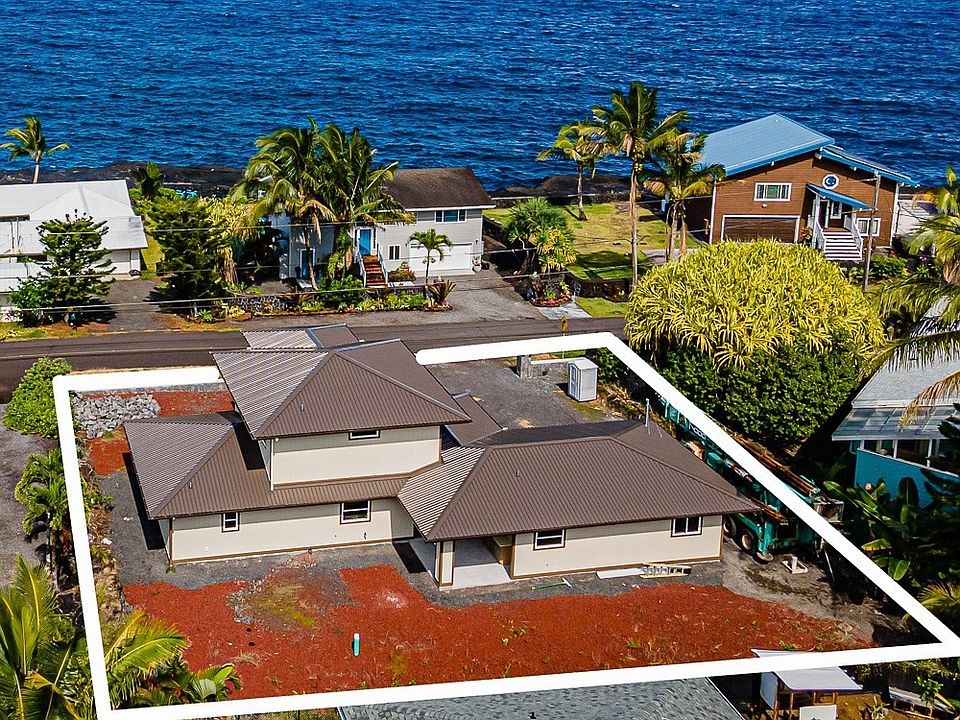 Located footsteps away from Kaloli Point’s ocean access area, this brand new home boasts awesome views of the Pacific, and nearly 2,700 square feet under roof.