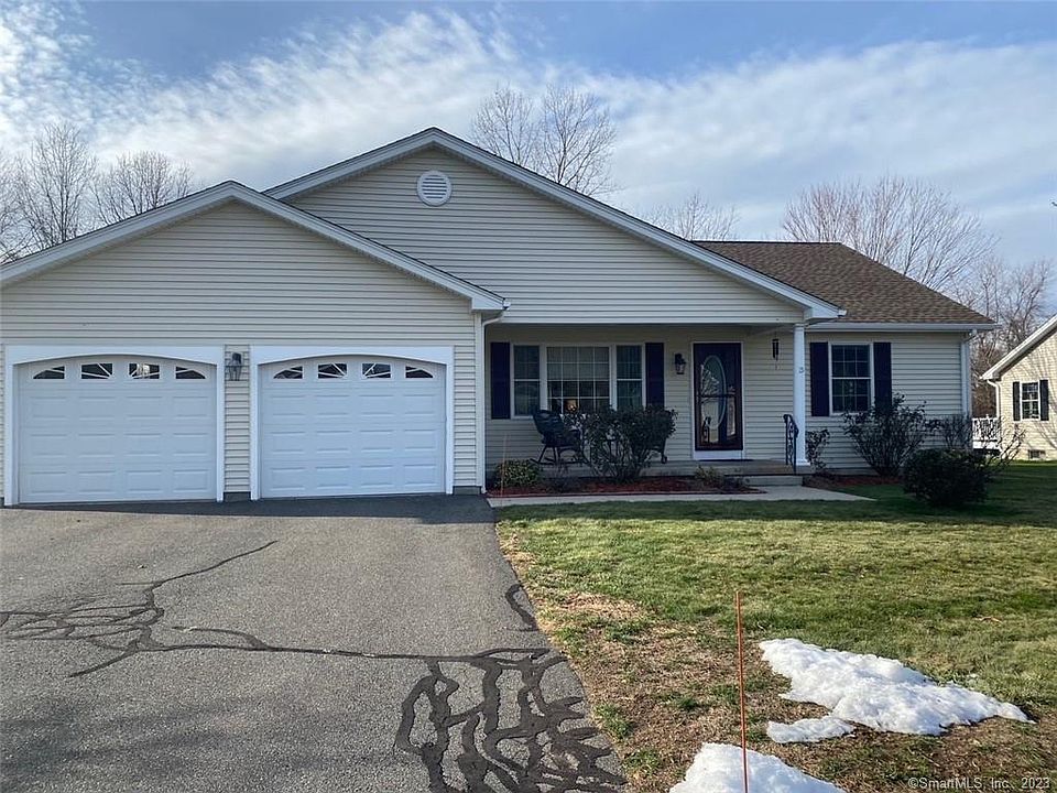 Stunning freestanding ranch at Meadow Farms condo complex. 1671 square feet, large open floor plan with living room/dining room combination, gleaming hardwood flooring, vaulted ceilings and a warm and cozy gas fireplace. Master bedroom suite offers full bath with walk-in shower, large walk-in closet and hardwood flooring. Guest wing offers a good sized bedroom and a full bathroom next to it. Beautiful large eat-in-kitchen with granite counters, hardwood flooring, pantry, and sliders leading outside to a trex deck overlooking private backyard. There’s a mud room from the oversized 2 car garage that has a laundry room and a double coat closet. Also a large full basement with hatchway. Very low HOA fees of $265.00 monthly. There is a whole house Generac that’s all hooked up, that will stay with this home. This is an awesome location —- less than 15 minutes to Bradley International Airport and minutes to downtown Hartford for fine dining and wonderful theaters to choice from. This is a truly cared for home!