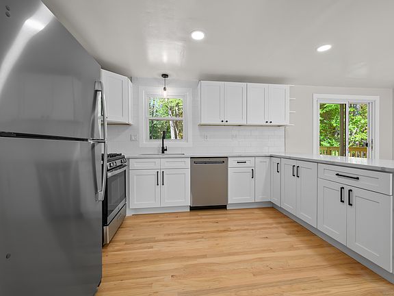 Welcome to 15 Alexander Road - this beautifully renovated 3-bed, 2.5-bath home offers modern comfort and timeless charm. Step inside to an open floor plan filled with natural light and anchored by a striking picture window in the living room. The kitchen has been fully remodeled with quartz countertops, stainless steel appliances, and white cabinetry flowing into the dining and living areas. Fresh interior paint, refinished hardwood floors, updated bathrooms, and stylish lighting and fixtures add a cohesive, modern feel throughout. The bedrooms feature custom closet systems and upgraded interior doors, while the lower level expands the living space with brand-new vinyl flooring. Outdoors, enjoy a refreshed deck and patio overlooking a private backyard, perfect for entertaining. With newer windows, solar panels, upgraded garage, and enhanced landscaping, this move-in ready home blends efficiency, comfort, and thoughtful design-all just minutes from shopping, dining, parks, and major highways.