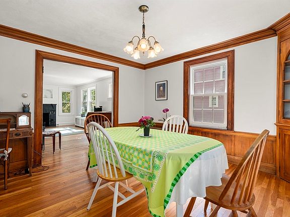 Storybook 1930 Colonial on a lovely, tree-lined street, one block from Richardson’s Baseball Field & playground and just a street over from recently built Zervas Elementary, this shingled classic brims with character. Freshly painted with refinished first floor hardwood flooring, it offers a sun filled front-to-back living/dining room featuring a fireplace with brick hearth, diamond-pane window, rich wood trim, and a corner china cabinet; sliding doors open to a rear deck. A bright finished attic - highlighted by a large picture window in the gable - adds flexible space. First-floor laundry and a private office with French door. A prominent front chimney and period millwork elevate curb appeal. Basement used for storage/workroom with finishing potential. Enjoy a lively, kid-friendly neighborhood with active sidewalks and wooded paths over the Sudbury Aqueduct; about a half mile to Waban Village, the T, Windsor Club, Starbucks, Stonelov’n Pizza, Library & Waban Market.