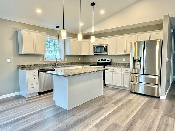 This country home is brand new! It features a versatile floor plan with open living kitchen area with cathedral ceiling, granite counters, Plank floors and More. 1st floor laundry in the extra large bathroom is a plus. The lower level features radiant heat in 2 rooms and a bath with easy outdoor access. This floor plan does not waste and inch, From the drive under garage to the efficient utility space. Set on a perfect wooded lot with field views.
