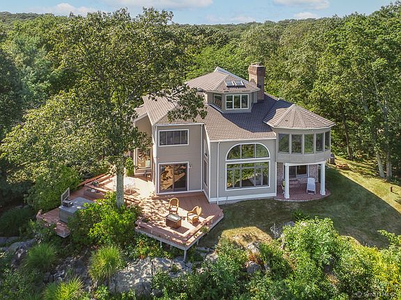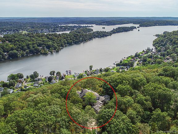 10,000 Sq Ft Modern Masterpiece with Unrivaled Candlewood Lake Vistas - Suspended above Connecticut's largest lake, this re-envisioned contemporary estate commands dramatic 180-degree panoramas across Candlewood Lake and the rolling hills beyond. Spanning just shy of 10,000 square feet (note - town does not include partial finished basement, enclosed porch and guest suite as living space) of sophisticated interiors, served by a private elevator and wrapped in multiple terraces, this residence pairs striking modern design with timeless elegance and nearly 7 acres of wooded privacy. Originally built in 1984 with latest transformation in 2022 by AIA architect Leigh Overland, the home offers twelve beautifully conceived rooms, including 6-7 restful bedrooms and 4.5 baths. A serene principal suite anchors the private wing, complete with a spa-inspired retreat. The sleek chef's kitchen, open to an inviting eat-in area and a glass-framed family room, serves as the heart of daily living. A formal dining room provides an elegant setting for memorable gatherings, while three fireplaces (2 gas and a wood burning in the principal bedroom) enrich the home with warmth and ambiance. An enclosed sunroom welcomes morning light, and a private guest apartment creates its own secluded sanctuary. Expansive walls of glass blur the line between indoors and outdoors, filling every space with natural light and framing postcard-perfect water vistas. Morning coffee against a watercolor sunrise and evenings on the expansive deck under gold-washed skies, spa terrace and lake-view hot tub, elevating starlit nights into a five-star retreat, exude a plush depth of comfort. Designed for both quiet living and effortless entertaining, the property offers multiple lounges, work-from-home flexibility, natural beauty, and exceptional privacy, yet remains moments from town and under 70 minutes from NYC. More than a home, this is a high-vantage lifestyle where Candlewood Lake and its environs are not merely at your doorstep, but at your command. Come join us in a front-row seat to nature's most spectacular performance.