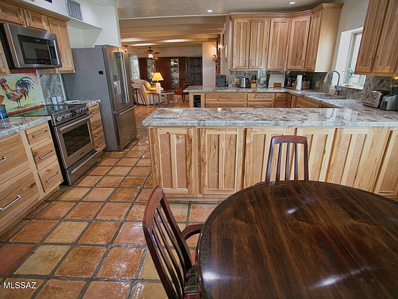 If you're looking for lots of extra space, room to breathe and spectacular views, this home is perfectly suited to you. Fantastic hill top 280 degree view from Tucson Mountains to the mountains in Mexico. Remodeled kitchen in 2018 including new custom hickory cabinets with soft close doors and drawers. New top of the line appliances. New windows and sliding doors also installed then. The Arizona room is 49 x 15. There is no HOA on this lot. The kitchen is large as are the family room and living/dining room areas. There is a large storage area off the smaller garage. Circular stairway to the roof in case there isn't enough view down below. Buyer acknowledges the Seller is a licensed real estate agent in the state of Arizona.