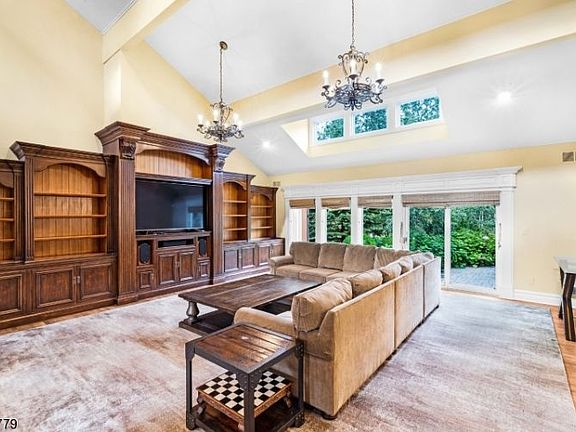 Welcome home to 15 Annabelle Lane. This stunning, one of a kind custom home in a premier cul-de-sac location in coveted Florham Park, boasts 5 bedrooms with 4 full and 3 half baths. Offering 3 levels of fantastic living space with unparalleled finishes and an open versatile floor plan, you'll find nothing has been overlooked. The home is enveloped with beautiful specimen trees and lush landscaping. Curved walls welcome you into the vast living room adjacent to the chef's kitchen area which leads to the level resort like outdoor entertainment area. This main level also accommodates the principal suite with an incredible bath, an office, formal dining room, two half baths and large laundry room. Moving to the second floor you enjoy a curved balcony overlooking the main level. Here you will find four generous bedrooms and two full baths. The lower level is home to an entertainment powerhouse! You won't want to miss it; luxuriously appointed kitchen with high end appliances, full bar, wine cellar, theatre, fireplace, weight room with half bath, a media room with a full bath, large dining area and a massive patio and outdoor fireplace. The large upper patio has a custom covered pavilion designed to enjoy the privacy of this home's expansive property with plenty of space for a pool. Not to mention it has a whole house generator, an oversized shed, and a to hot tub complete this wonderful property. This home and property offers suburban living at its finest!