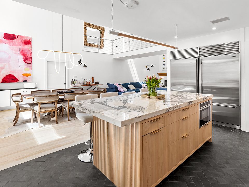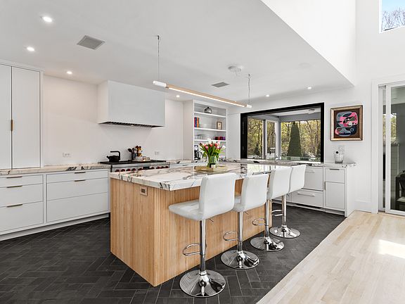Ready for Summer 2026, this recently renovated 5,600 square foot home features three levels of living space, with six bedrooms, five and one-half bathrooms, an open plan living room, kitchen and dining room, and a home theater! Located on a private cul-de-sac street close to East Hampton Village and ocean beaches in coveted Hansom Hills. Come in through the front door to the open floor plan with double height ceilings in the living and dining areas. The large gourmet kitchen features custom cabinetry and high end appliances including and two full sized Sub-Zero refrigerators. The home theater is located off of the main living room, and features stadium seating in a soundproofed room. The first floor also features two bedrooms, a gym and a home office. The second floor features a large en-suite master bedroom with a private deck overlooking the pool and backyard, a junior master bedroom, and two additional bedrooms with a shared bathroom. The lower level features a large entertaining room for playing games and watching television, and a full bathroom. Head outside onto the sun drenched screened-in porch with a gas fireplace that looks out to the landscaped grounds, outdoor kitchen, outdoor shower and a heated gunite pool with beautiful marble surround. This spacious residence is the ideal place to retreat to in the Hamptons all just a minutes ride to white sand beaches.