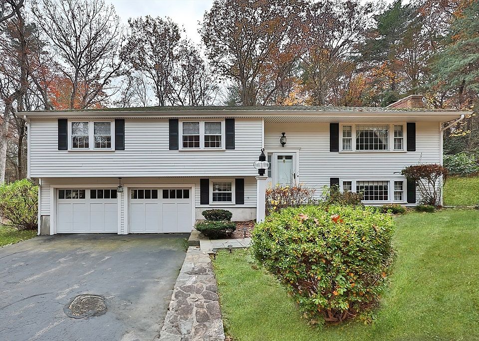 NEW TO MARKET!! Beautifully situated on a wooded 0.92 acre lot in North Walpole, this spacious Raised Ranch is ready for the next owners. The main level features a large fireplaced living room open to dining room; kitchen with updated cabinets and skylight; bright sunroom with sliders to exterior deck; large primary suite with attached bath; three additional generous bedrooms with ample closet space; and guest bath. Garden level offers a large family room with wet bar; half bath; office; laundry room; copious storage; and access to back yard. Well-maintained with lots of updates. Attached two-car garage and easy access to highways, public transportation, schools and all that Walpole has to offer. Open House Saturday and Sunday 12 to 2pm!