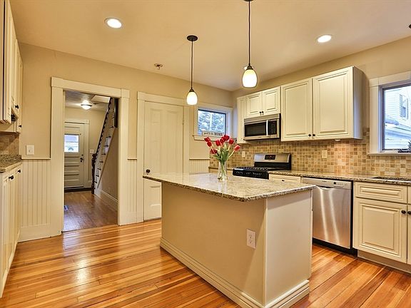 - Features: Flooring - Hardwood, Flooring - Wood, Countertops - Stone/Granite/Solid, Kitchen Island, Chair Rail, Exterior Access, Recessed Lighting, Stainless Steel Appliances, Gas Stove, Lighting - Pendant, Beadboard