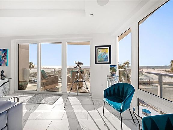 Experience the perfect fusion of luxury, coastal serenity and area vibrancy at Pura Vida Residences. Built in 2020, this exclusive community of just 22 private residences stands as one of the most recent additions to the tranquil, North end of award-winning Clearwater Beach yet is conveniently close to boutique shops, marine adventures, and a diverse array of dining options, from fine dining for special occasions to laid-back beachfront eateries…this is coastal living at its finest. Offering the largest floor plan in the building with 3,111sf, 4 bedrooms, 3.5 bathrooms, 10’ ceilings plus open concept living space, unit 303 is an exquisite and spacious NW corner residence offering comfort, style and refined living. Direct West facing floor-to-ceiling impact windows, sliders, and glass paneled balconies allow an abundance of natural light and seamlessly blend beach and Gulf views from the entire kitchen, living and dining areas, offering a front row seat to possibly some of the most spectacular sunsets you will ever see. Secure, direct elevator access opens to a dedicated foyer, where double doors lead you into this elegant coastal retreat. Art enthusiasts will appreciate the expansive hallways, ideal for showcasing personal collections. Premium features include Miele appliances, a 5-burner gas stove, sleek European-style cabinetry, oversized kitchen island with quartz countertops, tile flooring throughout, designer finishes, custom closets, motorized cellular shades (primary suite) and whole-unit water filtration. Select furniture pieces available, and all 7 wall-mounted flat-screen TVs convey. Conveniently located, private, climate controlled, 8x8 (approx) storage unit. Secure, gated entry to the building, 2 assigned under building parking spaces (pre-wired for an electric vehicle charging station) located close to the lobby access. Personal beach locker for easy access to fun in the sun at your doorstep. Building amenities include heated pool with flow resistance, spa, club room, fitness center, indoor bike storage, key fob and digital security for doors and elevators, building back-up generator and 24-7 video security. Pro-active and professionally managed Association. Pet friendly building (1 pet under 30lbs). One month minimum rental. Don’t miss this rare opportunity to claim your elegant slice of paradise on Clearwater Beach.