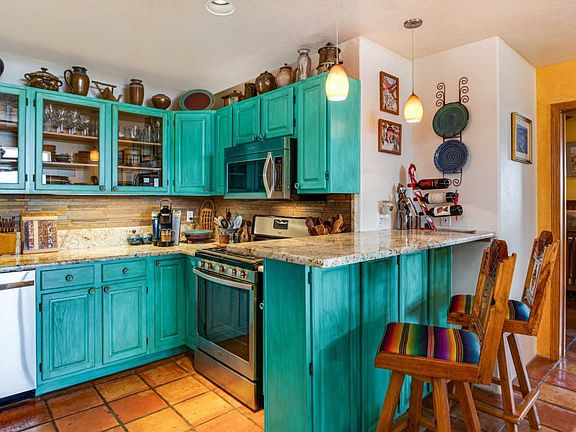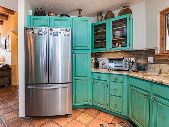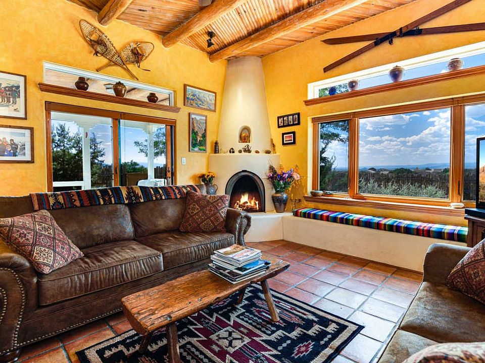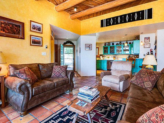 One of the sweetest most cheerful homes around!! From the moment you enter the front door you will be captivated by all the Santa Fe touchesâ¦Saltillo tile throughout, Vigas and Latillas, Nichos, and 2 Kiva fireplaces that create a cozy nest amid colorfully painted walls and cabinetry. This gem has been lovingly updated with granite counters in kitchen, and both bathrooms. Kitchen has custom finished cabinets, and new stainless-steel appliances including a gas stove There are new windows and new lighting, and 3 zone radiant heat. Home has Fabulous Views, multiple skylights, extensive outdoor space that include 2 decks and 2 patios! There is even a Detached Studio for the artisan or suitable for a separate office! It features a duel heat and Air Conditioning unit, windows for optimal light and French doors that frame the stunning mountain views that surround Eldorado. Eldorado is home to amazing sunsets, divine night skies where you really can see the Milky Way, the Eldorado Studio Tour, miles of hiking and biking trails, thousands of acres of wilderness, K-8 school, Senior Center, Library, summer-time pool, shopping, dining, and yet only about 20 minutes to The Santa Fe Plaza! Choice! All offers will be reveviewed February 20 @ 12:00 PM.