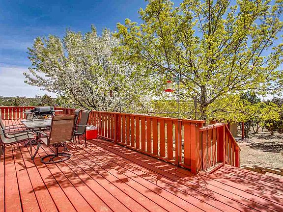 Looking for place with studio, workshop, extra large fenced yard for dogs, generous porches with mountain views in all directions, 4 bedrooms to keep everyone comfortable, a big grand house to call home? This is an easy house to live in with all those extra spaces we want in order to spread out. The studio space is an attached room, square footage of 480 is approximate: this opens off the family room but also has a separate entrance (and private porch) in case the artist in the house wants to be part of the Eldorado studio tour. The detached extra large garage has an attached but separate workshop space, this could also be an exercise room, etc. The bedroom wing has 4 good sized rooms: the master suite is a great retreat with a 3/4 bath and two closets. The layout of the entire house is logical for how we live, with a big room off the kitchen and dining: this is currently a play room but could become a TV or family room also.....abundant possibilities and the good news is everyone in the household will be happy because everyone gets their own space! Just three steps from LR/BR wing into dining and family room wing. The house has a great sense of natural light pouring in, plus, added privacy because the lot abuts a green space. Even the dog(s) will have a wonderful fenced back yard to romp about!