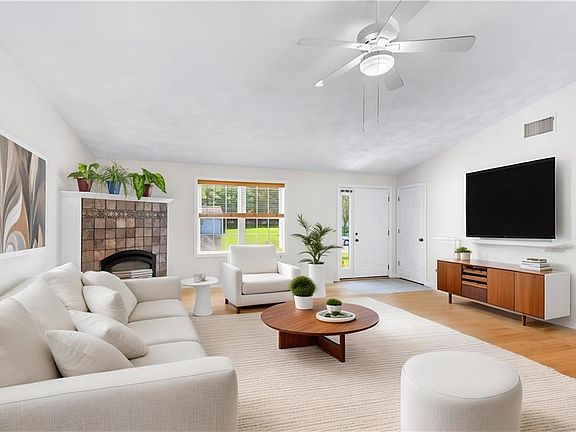 This sprawling 3-bedroom, 2-bath ranch in Smithfield offers easy single-level living with modern updates and timeless charm. The open floor plan flows from the bright living room and kitchen to a bonus pool table room and a second upstairs living area featuring a stunning see-through fireplace. The finished basement provides comfort and extra flexibility for work or play. Outside, enjoy a beautifully landscaped fenced-in yard with a patio, awning, mature trees, and plenty of privacy in a desirable neighborhood close to shops and parks. Check out the Virtual Tour!!