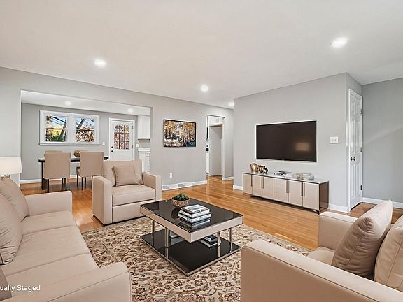 Desirable side street neighborhood location for this absolutely move-in-ready recently renovated Ranch. Vinyl-sided 3 bedroom Home features a bright, open layout! Has partly finished basement, brand new kitchen and brand new full bathroom, new windows, new driveway and new electric system! Refinished hardwood floors and new recessed lighting shine throughout the main level. Whole interior has been freshly painted. Living rm open to dining rm w/ walk-out to back deck & good-sized backyard. New kitchen has quartz counters, island & new stainless steel appliances. Neat & clean lower level has family rm and additional bonus rm with recessed lighting and laminate flooring. New 6 panel interior doors, freshly landscaped exterior, forced hot air by gas with central air! A fantastic opportunity to own a turnkey home in a well-established neighborhood!