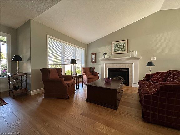 Welcome to this immaculately maintained and updated bungalow situated on a beautiful, private and peaceful cul-de-sac in the town of Port Dover. The living room is highlighted by a gas fireplace, hardwood flooring and a cathedral ceiling, creating an inviting atmosphere. The cathedral ceiling extends over the dining room, featuring a sizable window overlooking perennial gardens and mature trees. The kitchen includes a spacious island, spice cabinet, pantry and a second eating area with patio doors to the private patio and landscaped back yard. Retreat to the generous primary bedroom, featuring hardwood flooring, a walk-in closet and an ensuite bathroom with walk in shower. Two additional well-appointed bedrooms with hardwood flooring and an updated second full bathroom, with quartz countertops, ensure ample space for family and guests. The convenience of a main floor laundry setup, along with a lower level family room and stylish bathroom—complete with another quartz countertop—makes this property exceptional. Updates in the last five years enhance the comfort and efficiency of this home, including windows, furnace, air conditioning, insulated garage door and R60 attic insulation, providing peace of mind and energy savings. Additional updates include new flooring, central vacuum, home surge protection, eavestroughs and downspouts, fresh paint, door hardware, upgraded baseboards, sills and trim, and two gas BBQ connections for the ultimate outdoor convenience. This carpet-free home combines modern amenities with classic charm, creating a space that is both functional and inviting. Don't miss the opportunity to make this Port Dover bungalow your own. Schedule your private showing today and discover the lifestyle that awaits you in this beautiful home!